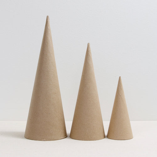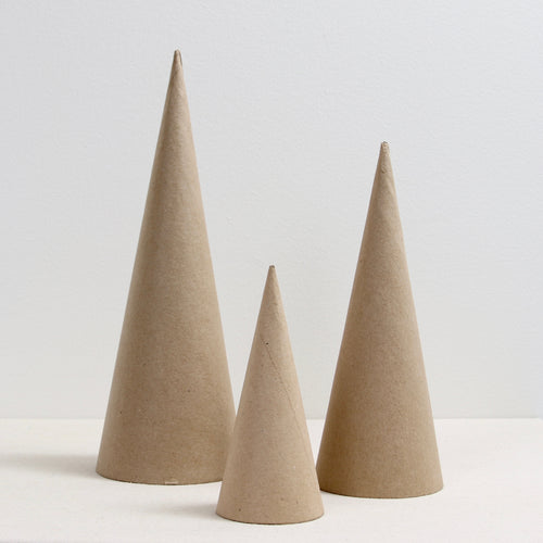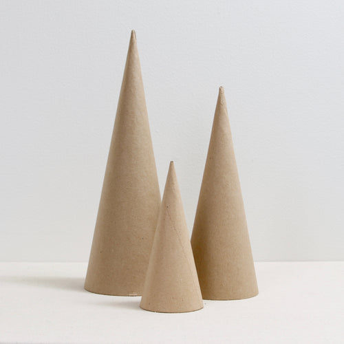 We love covering these cones in felt, poms and roving and making into trees! Cardboard cones are 13 3/4" tall and 5" wide and made from recycled materials. Includes one paper mache cone.