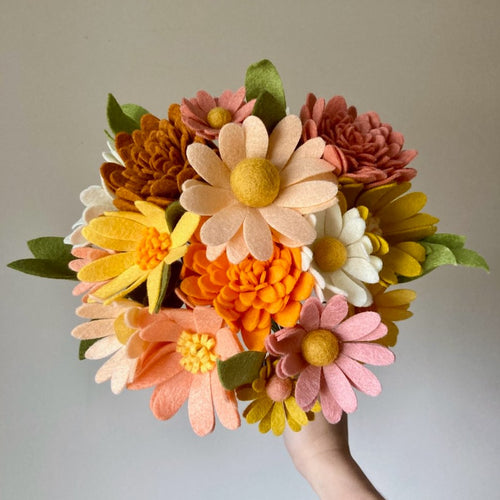 Create a bouquet of daisies and chrysanthemums! The daisy shapes fit perfectly with our extra small and small felt poms. Find the instructions on our blog.