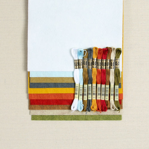 Inspired by the farmscape of Iowa. Includes colors White, Icicle, Bronze, Graphite, Mustard, Copper, Brick, Acorn, White Truffle and Zucchini. Coordinating DMC embroidery floss is also available.
