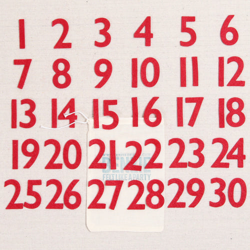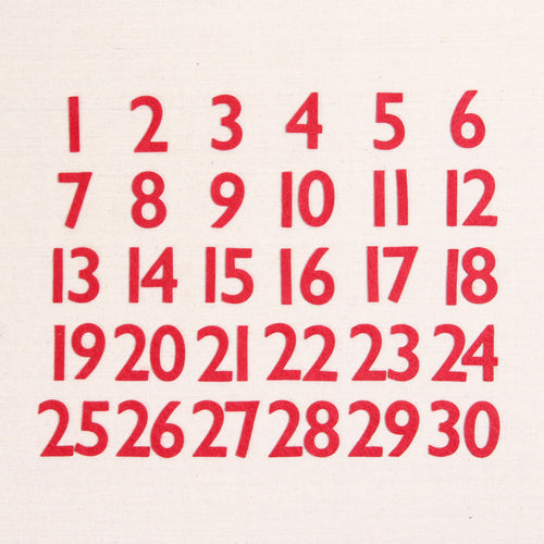 Use these numbers to easily create advent and countdown calendars, like our favorite ones from the Sugar House Shop! Receive two sets of numbers 1-30. Select up to two colors. If no color selection is made we will send our standard colors of Red and Fern. Numbers are approximately 1 5/8" in height.