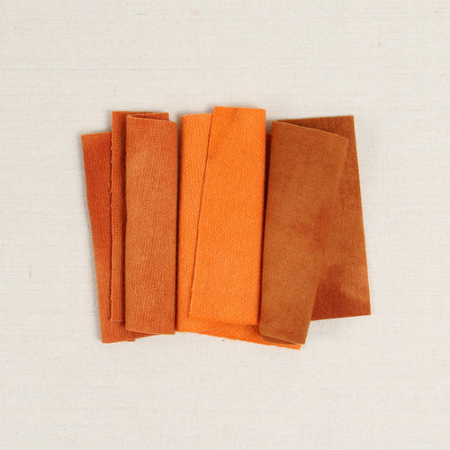 Felted wool is a 100% woven wool that has been washed and felted for softness and body. Hand-dyed textiles often have a mottled or marbled finish that will add natural variance and softness to your craft. This bundle includes three orange shades that are approximately 6x9 inches each.