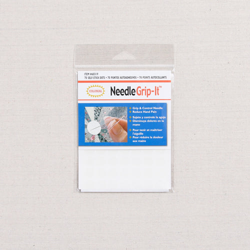 Colonial Needle Grip-It Finger Dots give your fingers a little more traction for hand sewing, quilting, cross-stitch and more. These dots are soft and flexible, like adding a second, soft plastic layer of skin. Just stick these dots to your thumb and any fingers you use to pull or push stubborn needles. Their special adhesive will keep them securely in place, even through hand-washing. 70 Dots.