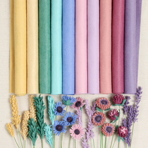 Use to accent all felt flowers bouquets or create greenery sprigs. This multi-use die can make floral stamens or sprigs of lavender, evergreen and rosemary too! Also makes beautiful accent grasses such as wheat and phalaris and florals such as mums, thistle, globe amaranth, chamomile and aster. A must have die for floral crafters. Includes five dies total that are 5 7/8" tall and vary in width from 9/16" to 1 1/16" wide. Learn more at our blog!