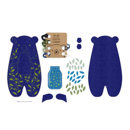 Meet Glowbear, a 7" embroidered felt doll kit. One of the Keeper Bears, Glowbear basks in the soft flicker of fireflies at dusk. This kit includes everything you need to make your own storybook-inspired felt doll.