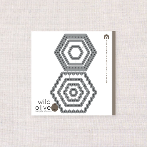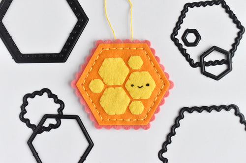 This die makes a great base for ornaments as well as other hexagon-shaped projects! Layer the hexagons onto the scallops and stitch them on! The hexagons measure 3", 2", and 1" wide, and the scallops are designed to layer and extend around the hexagons.