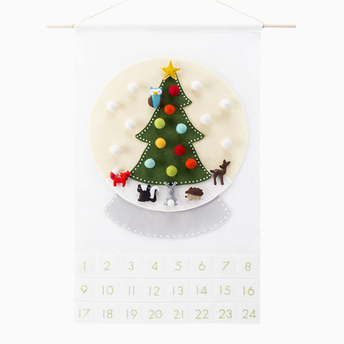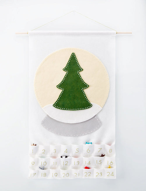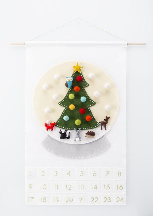 A snow globe filled with a flurry of snow flakes creates the perfect setting for your favorite woodland animal friends to help decorate a classic Christmas tree just in time for Santa's arrival. Handcraft this amazing treasure from Benzie's wool felt and enjoy this Christmas countdown for generations! Downloadable pattern includes easy-to-follow detailed instructions with full-color photographs, plus full-size pattern templates for base, numbers, & ornaments. Finished calendar dimensions are 18 inches x 31 inches.