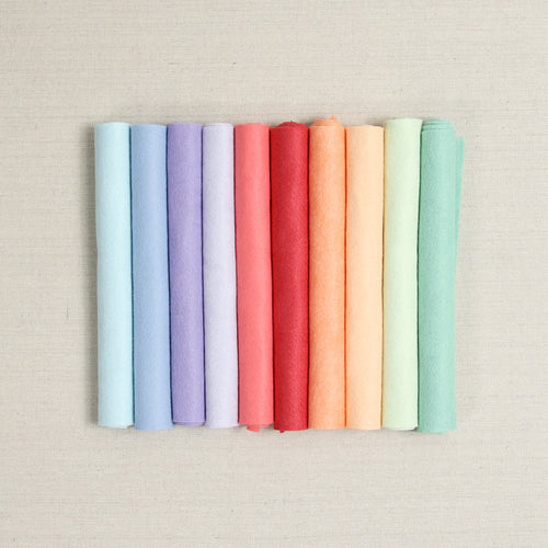 Our felt is a blend of 20-35% wool with the rest rayon; approximately 1mm thick. Our wool is only from merino sheep, prized for their quality and softness and making Benzie's felt strong, resistant to pilling, and colors vibrant.