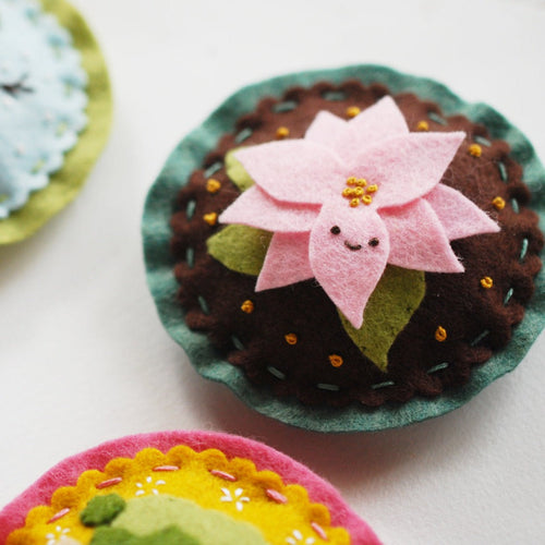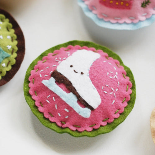 Felt Palette includes (10) 9 x 12" sheets of Moss, Blue Spruce, Icicle, White, Pink, Rose, Mustard, Fern, Brown, and Seaside.