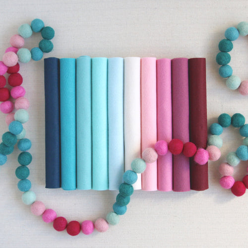 Our felt is a blend of 20-35% wool with the rest rayon; approximately 1mm thick. Our wool is only from merino sheep, prized for their quality and softness and making Benzie's felt strong, resistant to pilling, and colors vibrant.