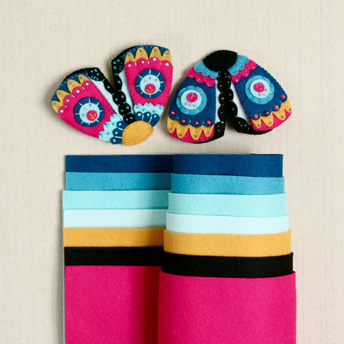 Pure 100% wool felt in a deep Magpie blue. Select cut sheets or yardage. A 1 yard cut measures 36"x72". Maximum continuous cut is 1 yard. Anything over 1 yard will be sent in multiple cuts. Coordinating DMC six strand embroidery floss and Sulky appliqué thread is also available.