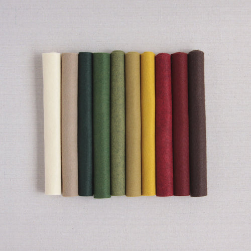 Benzie's wool blend felt in Meadow green. Select cut sheets or yardage-multiples of 1/2 yard cuts will yield one uncut sheet. Our bolts are approximately 36" wide. Full bolts are 40% off the retail price of cut sheets. Inventory on full bolts is limited, please contact us for availability.