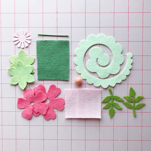 This Mini Felt Flower Craft Kit is designed by Beth at Heartgrooves Handmade to encourage you in making beautiful mini felt flowers on your own. The high-quality wool blend felt pieces are cut and organized for you to have a fun and stress-free crafting experience. The kit includes a link to download printable step-by-step instructions with full-color photos.