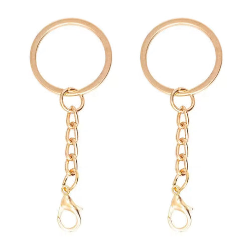 Add the adorable gold keychains for a special touch. Ring measures 1" (2.5 cm) in diameter and chain measures 1.5" (4 cm) long. Two pieces included.