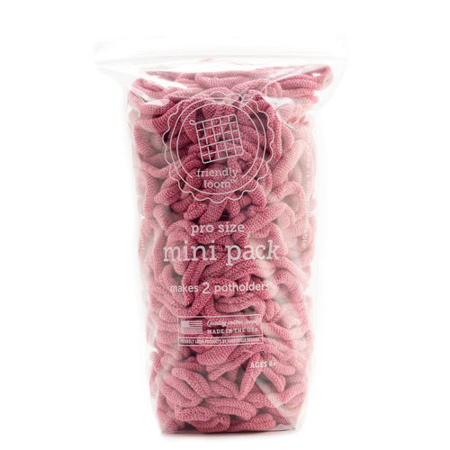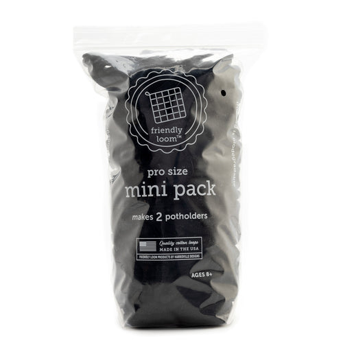 These cotton potholder loops in coordinating colorful mixes are custom made to fit Friendly Loom™ Potholder PRO® loom. Makes two 8" x 8" potholders. Recommended for ages 8 and older. Made in the USA by Friendly Loom