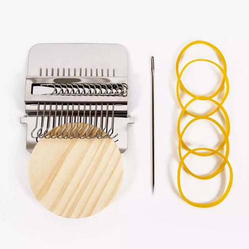 - Includes: Loom, 3.9in Needle, Wooden piece 2.4in x 6.4in, 5 Rubber Bands and Instructions.