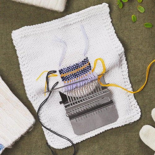 Easy to use hand loom for small creative weaving & mending projects -we love using DMC Eco Vita thread with it! 8 piece set packed in a simple cardboard envelope for minimal waste. Includes instructions and pattern, plus QR code for online tutorial. By DMC