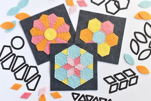 Cozy up with some mix-and-match felt quilt blocks! The Mollie's Cozy Quilt Blocks die set allows you to make traditional quilt blocks. It makes things like a dresden plate, orange peels, grandmother's flower garden, and more. You can also use the basic shapes to make modern quilt blocks or your own creations. Look how we made them into coasters on our blog!