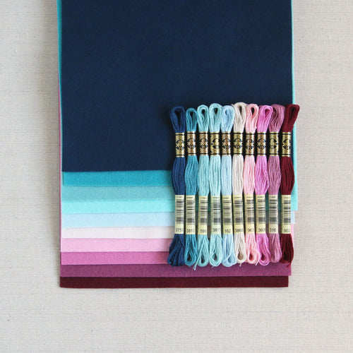 Coordinating DMC six strand embroidery floss and Sulky appliqué thread is also available.