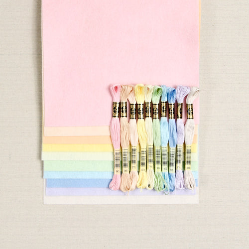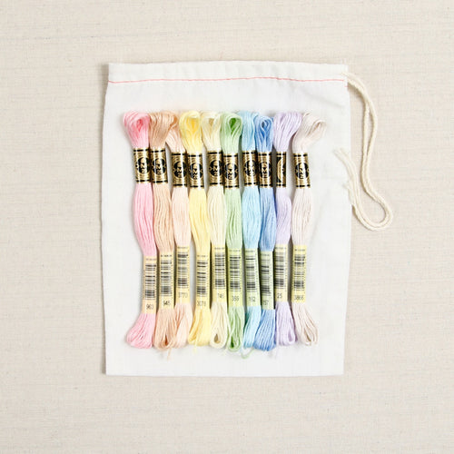 Unicorn dream and fairy wings -everything this palette is made of! Includes the lightest pastels of Peony, Meringue, Peach, Butter, Ecru, Mint, Icicle, Sky, Opal and Linen. Coordinating DMC embroidery floss is also available.