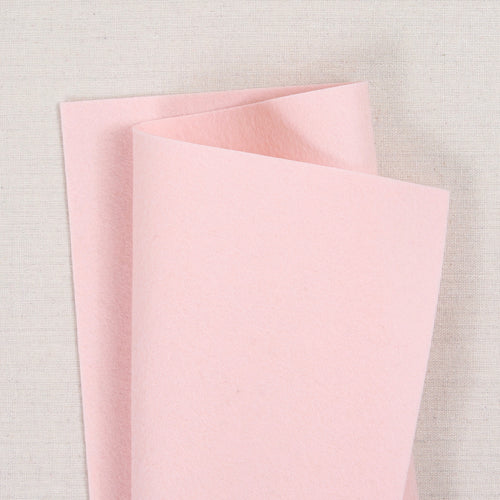 Pure 100% wool felt in Plié, a light pink. Select cut sheets or yardage. A 1 yard cut measures 36"x72". Maximum continuous cut is 1 yard. Anything over 1 yard will be sent in multiple cuts. Coordinating DMC six strand embroidery floss and Sulky appliqué thread is also available.