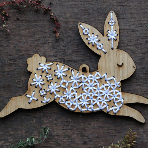 Add a handmade ornament to your tree with this simple DIY kit ideal for beginners! Holes are pre-cut and stitches are clearly marked out so it’s easy to follow along. The needle has a blunt tip, making it safer for kids, too. "Blackwork" stitches in bright white perle cotton on white oak create an elegant look for any tree, garland or gift topper! Once you're done stitching, use the adhesive velvet backing to hide the back of the stitches and create a polished look