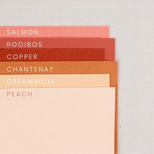 Pure 100% wool felt in Rooibos. Select from 9x12" sheets or 12x18" sheets. Coordinating DMC six strand embroidery floss and Sulky appliqué thread is also available.