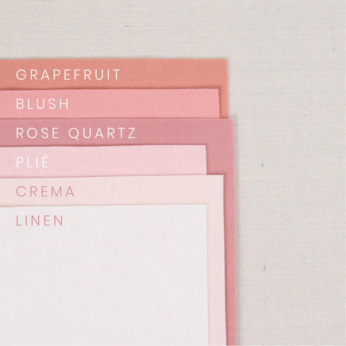 Pure 100% wool felt in Rose Quartz. Select from 9x12" sheets or 12x18" sheets. Coordinating DMC six strand embroidery floss and Sulky appliqué thread is also available.