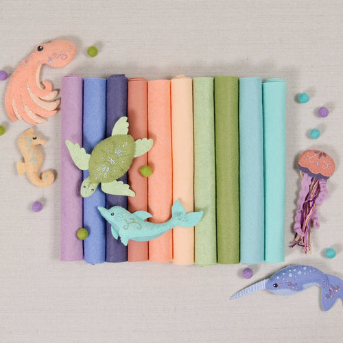 You can sew these guys into tiny plush, or mount and frame them to hang on the wall. You can also use your felt animals to make ornaments, magnets, extra special gift wrap, baby mobiles, party decorations, or anything else you can think of! Felt palette makes approximately two sets of sea creatures.