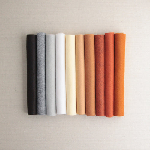 Our felt is a blend of 20-35% wool with the rest rayon; approximately 1mm thick. Our wool is only from merino sheep, prized for their quality and softness and making Benzie's felt strong, resistant to pilling, and colors vibrant.