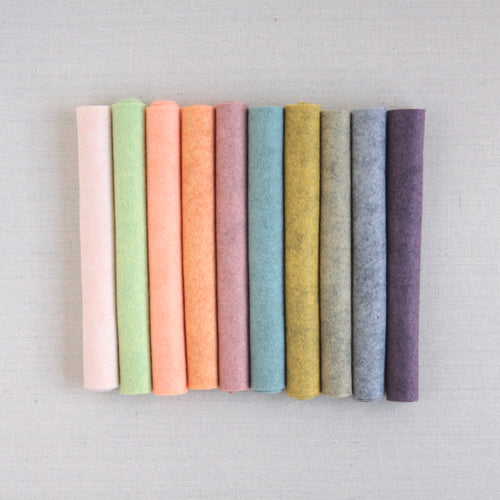 Benzie's wool blend felt in Smoke, a heathered gray color. Select cut sheets or yardage-multiples of 1/2 yard cuts will yield one uncut sheet. Our bolts are approximately 36" wide. Full bolts are 40% off the retail price of cut sheets. Inventory on full bolts is limited, please contact us for availability.