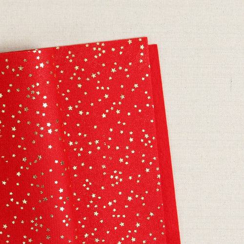 Delicate tulle bonded to 100% pure wool felt for a sparkly gold star finish! Includes one 8x11.5" sheet of pure felt.