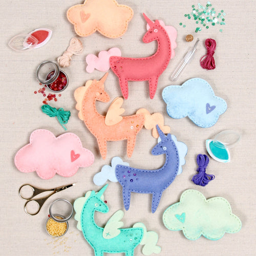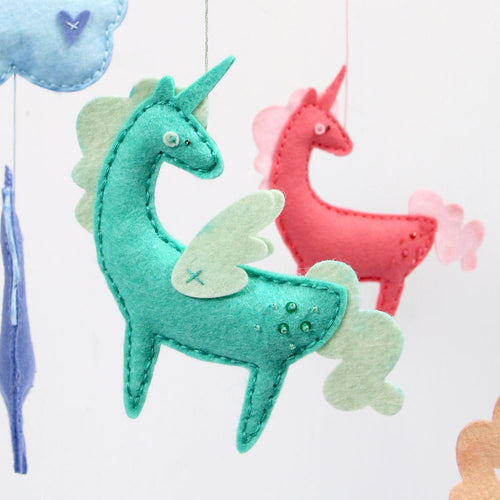This die can make one stuffed unicorn approximately 4 1/2 wide and 5" tall. See our tutorial for our unicorn and cloud mobile and learn how to stitch! The stitch marks make it easy to sew perfectly spaced stitches every time!