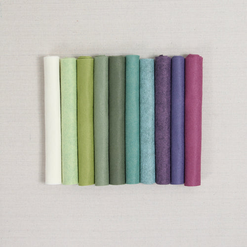 Our felt is a blend of 20-35% wool with the rest rayon; approximately 1mm thick. Our wool is only from merino sheep, prized for their quality and softness and making Benzie's felt strong, resistant to pilling, and colors vibrant.