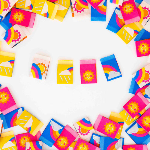 We teamed up with Chelsea Graham of Bobbie Lou's Fabric Factory to create this colorful multipack of labels. The design was inspired by Chelsea's children- her daughter, Sunny, and son, Duke, who is on the autism spectrum and adores rainbows! The labels are double sided and include pops of metallic silver. They are the perfect accent for pockets, outer seams, quilts, gifts and more. They are super soft to the touch and never scratchy. The labels are fully washable and can handle the heat of the dryer.