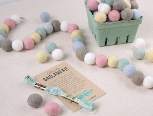 The coordinating Add-on Kit includes one skein of our favorite pearl cotton stringing thread, a needle that is just the right size for poms plus a baltic birch wood thread bobbin to keep your pearl cotton tidy. Instructions included on how to unwind the skein and make a garland. Add-on kit does not include poms.