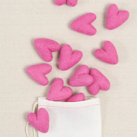 Sweet hand felted hearts are approximately 1 5/8" wide by 1 1/2" tall. Includes 12 hearts of one color. Other bright Sweethearts include Red, Butterscotch, Canary, Emerald, Cerulean and Dahlia.
