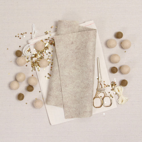 Benzie's wool blend felt in White Truffle. A wildly pretty neutral that pairs well with others or can grow on it's own. Select cut sheets or yardage-multiples of 1/2 yard cuts will yield one uncut sheet. Our bolts are approximately 36" wide. Full bolts are 40% off the retail price of cut sheets. Inventory on full bolts is limited, please contact us for availability.