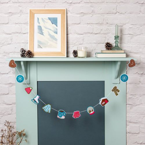Embrace the magic of winter with this charming felt garland kit, celebrating all the season’s cosy delights! From steaming hot chocolates to swift ice skates and snuggly knitwear, each piece captures the essence of crisp, frosty days. Crafted with our soft wool-blend felt and DMC threads, the kit comes with clear, step-by-step instructions to guide you.