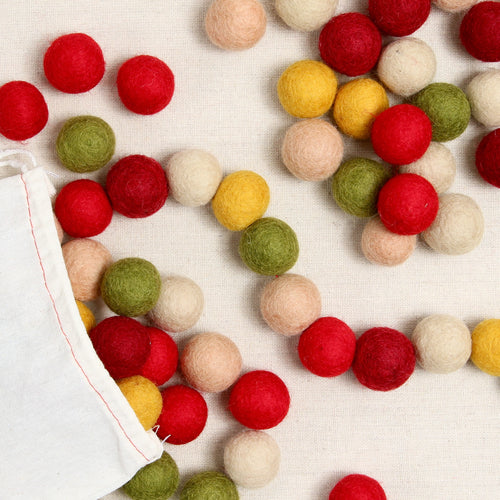 Warm & cozy colors remind us of being home for the holidays. Includes the colors Almond, Crimson, Red, Cameo, Mustard and Moss. 50 poms total.