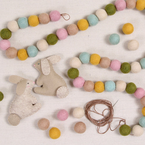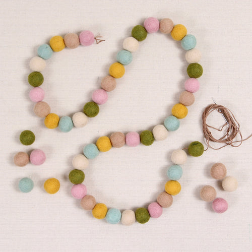We love using our pom-poms to make jewelry, wreaths, trivets, and of course garlands! These poms are simple to string and make a great craft for all ages.