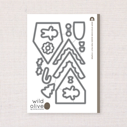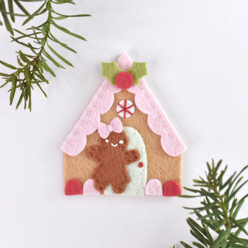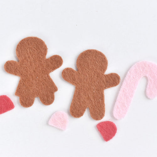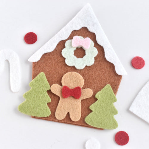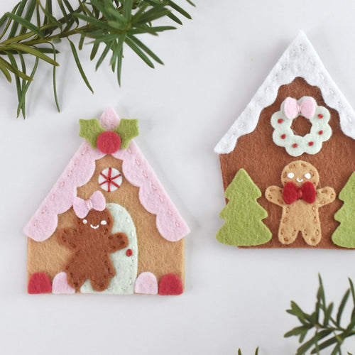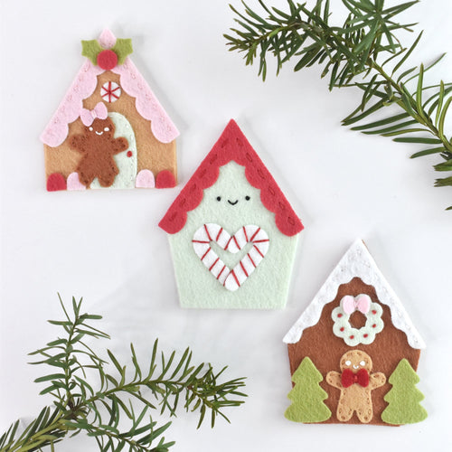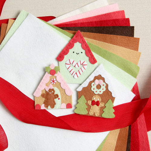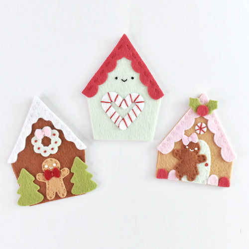 Easily create a gingerbread village. Includes two different styles of houses, a gingerbread man, gingerbread girl and sweets to decorate! Houses are approximately 2 1/2" to 3 1/2" tall. Also use our free template to add embroidery!