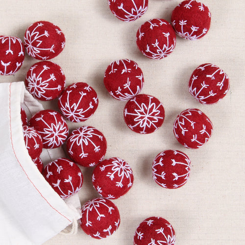 Large sized crimson poms stitched with a white star design. Includes 12 poms total. Approximately 1 1/4" size.