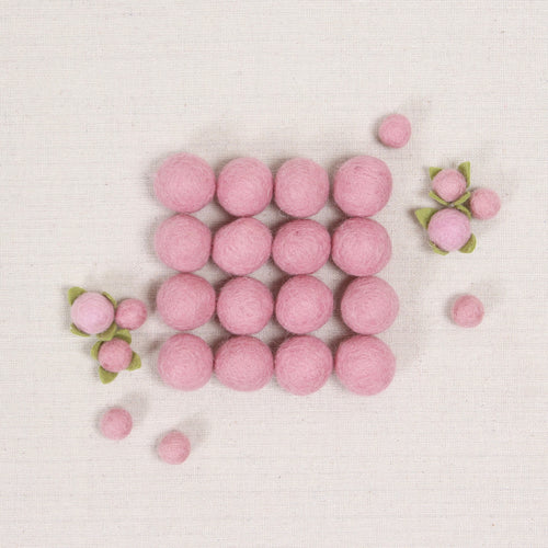 Orchid felt balls are pink with purple undertones. Carefully hand felted by our partners in Nepal, expect some variance in size and color. Extra Small, Small, and Medium sizes include 50 poms per bundle. Large poms include 20 poms per bundle.