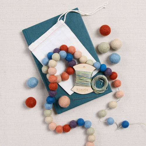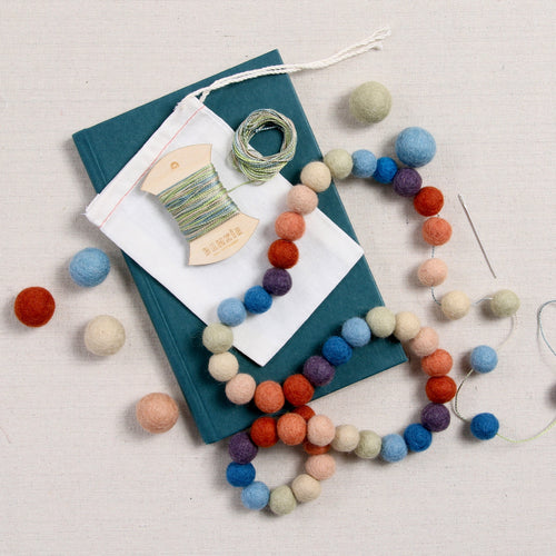 This kit includes everything you need to string a garland. Our needle and thread glide effortlessly through our poms-making it truly child's play! A thread winder is included to help keep your threads tidy. Pick your favorite coordinating color! Felt poms are sold separately.