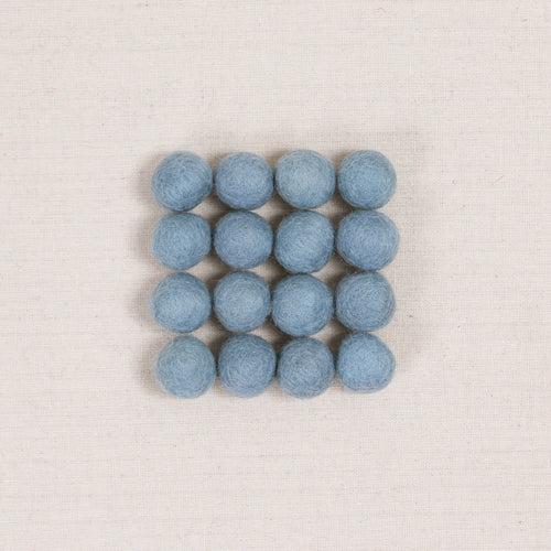 Felt poms in Salt Water. Carefully hand felted by our partners in Nepal, expect some variance in size and color. Extra Small, Small, and Medium sizes include 50 poms per bundle. Large poms include 20 poms per bundle.
