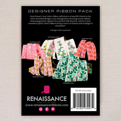 Lizzy House’s Love Letter ribbon collection is a heartfelt tribute to her most cherished designs, now reimagined in stunning woven ribbon! Featuring graceful cygnets, the sweetest little bunnies, and her iconic strawberry patch, these ribbons bring a touch of whimsy and nostalgia to any project.
