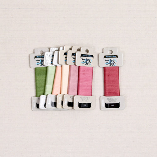 Hand-dyed 100% silk Chinese silk ribbon is strong, so soft and incredibly durable. Slides beautifully through your canvas for silk embroidery -or use as ribbon to embellish your felt ornaments. Includes 5.5 yards of 4mm or 7mm wide ribbon, dye lots vary. By River Silks.
