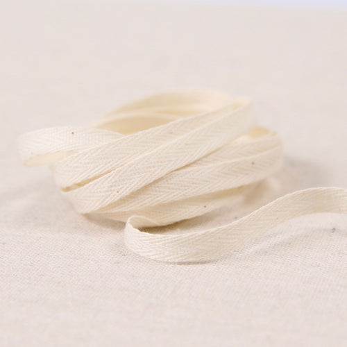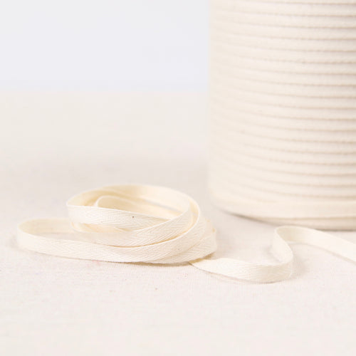 Twill tape ribbon in 3/8" or 5/8" wide in neutral, lightweight 100% cotton. Includes 25 yards per spool. We use the 3/8" ribbon to hang garlands and the 5/8" to wrap our embroidery hoops. This ensures extra fabric tension and makes for a tight hoop!