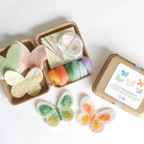 This mini kit is the perfect size for vacation crafting, a birthday gift, or fun after school or summer craft with kids. A wonderful project for eye-hand coordination and inspiring creativity! A high quality, approachable Needle Felting Craft Kit that invites beginners & beyond to experience the joy of felting wool. Following simple instructions, crafters add colorful details to their butterflies. They will find enjoyment beyond honing the craft itself, as they can string the finished butterflies together to make a wall hanging or use as individual ornaments.