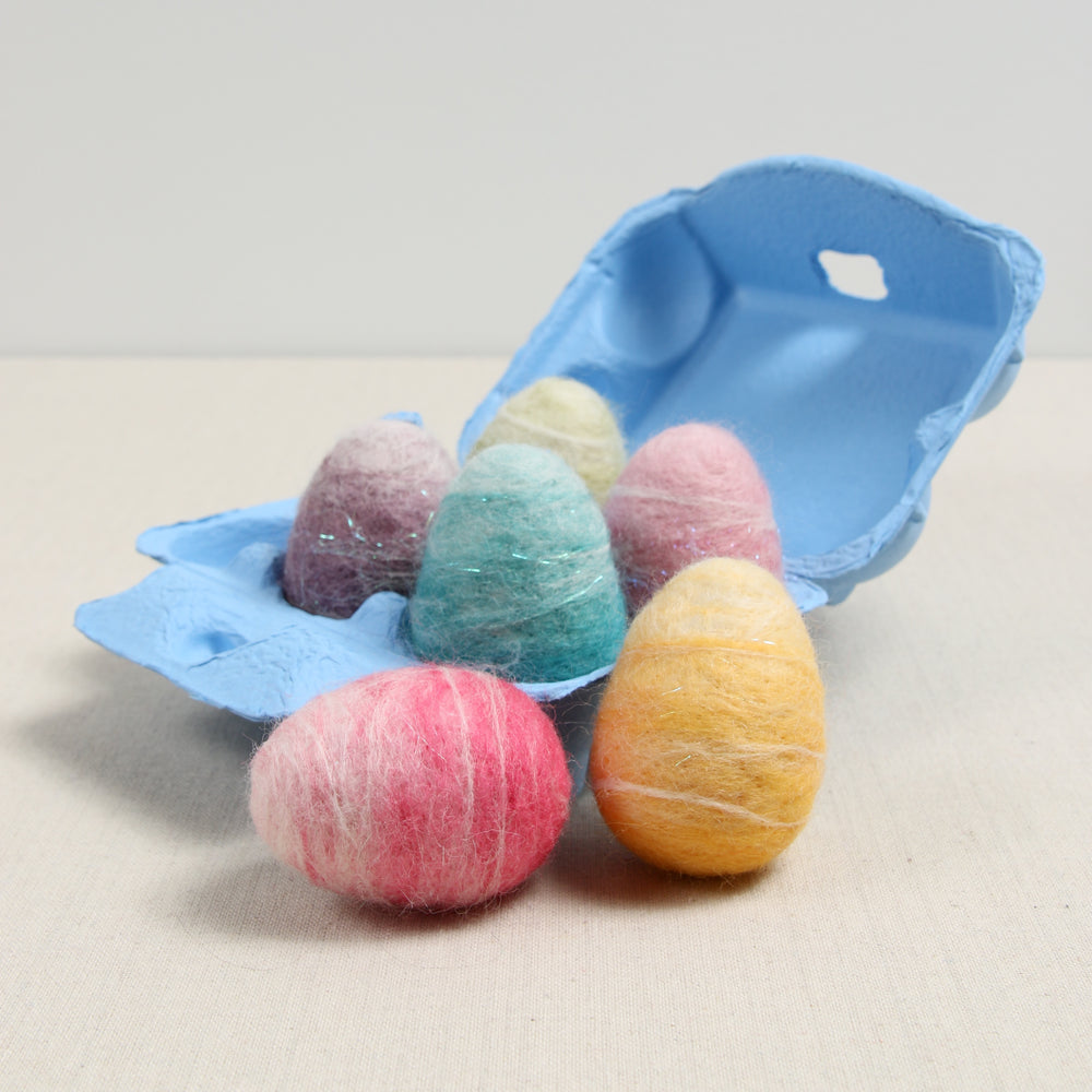 Prism, a roving collection in a spectrum of colors: White, Golden, Blossom, Peacock, Fern and Vineyard. Select six 1/2 ounce or 1 ounce balls of sliver roving for use in needle felting (we decorated felt eggs!), wet felting, or weaving.